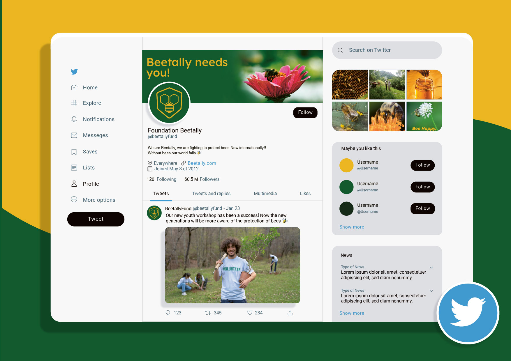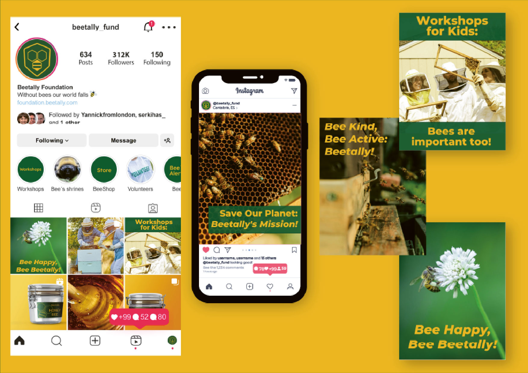 Para su lanzamiento internacional, desarrollé una identidad renovada que reflejara su misión: a través de voluntariados, charlas educativas y la venta de miel ecológica, la asociación recauda fondos para construir santuarios que garanticen la preservación de las abejas. Beetally es más que una marca, es un movimiento por la biodiversidad.